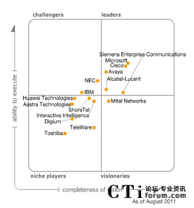 Gartner發(fā)布《2011統(tǒng)一通信魔力象限》報告