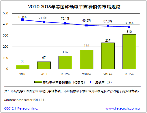 2015年美國移動電子商務(wù)市場規(guī)模將達到310億美元