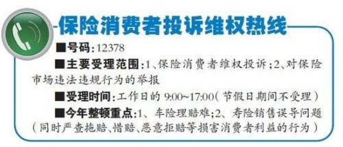 據(jù)河北保監(jiān)局相關(guān)人士介紹,昨日是12378保險(xiǎn)消費(fèi)者投訴維權(quán)熱線開通的首日,已經(jīng)有保險(xiǎn)消費(fèi)者打進(jìn)電話,反映其在保險(xiǎn)消費(fèi)購買當(dāng)中遇到的一些問題。