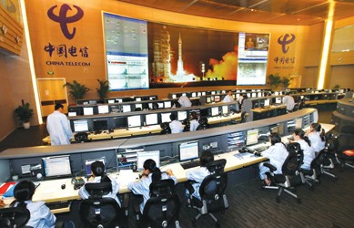 上海電信NOC(網(wǎng)絡(luò)操作維護(hù)中心)主要負(fù)責(zé)城市光網(wǎng)、移動網(wǎng)絡(luò)、軟交換、全國骨干網(wǎng)、海光纜等新型網(wǎng)絡(luò)和業(yè)務(wù)平臺的集中監(jiān)控和實(shí)時(shí)指揮調(diào)度。當(dāng)城市中任何一個(gè)地方出現(xiàn)網(wǎng)絡(luò)故障,監(jiān)控大廳115平方米的巨型屏幕警報(bào)聲便自動響起,中心迅速啟動應(yīng)急方案,及時(shí)調(diào)度排障,從而為用戶提供穩(wěn)定、高效、優(yōu)質(zhì)的通信網(wǎng)絡(luò)保障服務(wù),是“亞太信息樞紐港”的守護(hù)神。
