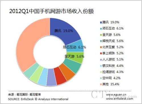 圖:2012Q1中國(guó)手機(jī)網(wǎng)游市場(chǎng)競(jìng)爭(zhēng)白熱化