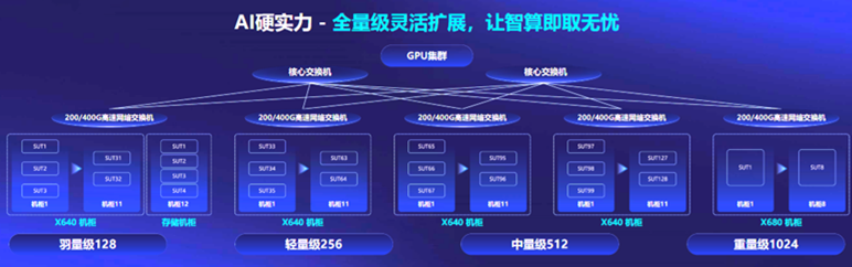 隨著算力成為稀缺資源,寧暢從客戶角度出發(fā),提供了“先享后付”的算力購(gòu)買方案。目前,寧暢AI算力棧已開(kāi)放免費(fèi)試用,現(xiàn)已有50+用戶預(yù)約試用。該算力棧是一個(gè)包括128臺(tái)GPU服務(wù)器的千卡級(jí)別算力集群,標(biāo)準(zhǔn)化智算中心建設(shè)方案囊括了羽量級(jí)128、輕量級(jí)256、中量級(jí)512、重量級(jí)1024四個(gè)等級(jí),實(shí)現(xiàn)全量級(jí)靈活擴(kuò)展,給了用戶極大選擇空間。用戶可在試用中嘗試不同的業(yè)務(wù)組合、方案框架,以便找到“最優(yōu)性價(jià)比”的智算中心建設(shè)方案。