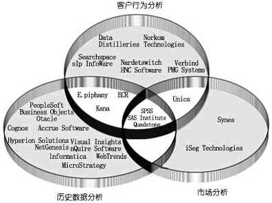 這一市場的供應(yīng)商目前主要分為兩大陣營:一類著眼于客戶行為傾向分析;另一類著眼于對客戶價值進(jìn)行評估。前者主要注重了解客戶的喜好,而后者則著重關(guān)注客戶對企業(yè)的潛在收益。