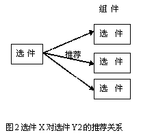 當(dāng)客戶選擇某個(gè)選件時(shí),系統(tǒng)自動(dòng)提示推薦另一選件,這種關(guān)系稱為選件的推薦關(guān)系。比如,在配置手機(jī)產(chǎn)品時(shí),選擇了某電話選件,則推薦使用特定充電器型號選件,雖然其他類似的選件也可以適用。如圖2所示,雖然選件X可以與組件Y內(nèi)的選件Y1,Y2,Y3搭配,但推薦使用Y2。