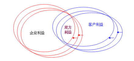 如何才能改善客戶得到的價(jià)值呢?如何才能在企業(yè)利益與客戶利益之間找到一個(gè)最佳平衡點(diǎn)?方法之一是把自己想要做的事情勾勒一下。我們想要找到的是雙贏區(qū)域。在比較復(fù)雜的情況下,這個(gè)雙贏區(qū)域可能還會(huì)移動(dòng)。設(shè)計(jì)一個(gè)應(yīng)用軟件并配置一套人員流程來(lái)跟蹤一個(gè)會(huì)移動(dòng)的雙贏區(qū)域顯然是不大可能的。這也正是CRM為何如此難以把握的原因之一。