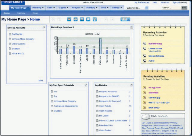 vtiger CRM利用開源軟件的優(yōu)勢和眾多的企業(yè)級功能,給用戶帶來更高的附加價(jià)值。這些功能特性包括:銷售自動化、客戶支持和服務(wù)、營銷自動化、存貨管理、對多種數(shù)據(jù)庫的支持、安全管理、產(chǎn)品定制、日程、電子郵件整合、各種插件及其他。