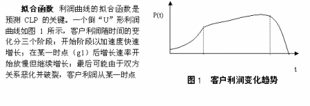 客戶利潤曲線除了倒“U”形外,可能還有各種其它形狀。其它形狀CLP預測的關鍵是找到合適的客戶利潤曲線擬合函數(shù)。為此公司需要建立一個客戶利潤曲線擬合函數(shù)庫,庫中存放各種形狀實際客戶利潤曲線的擬合函數(shù)。當客戶歷史利潤曲線不符合倒“U”形變化規(guī)律時,在庫中尋找新的擬合函數(shù)。如庫中沒有現(xiàn)成的滿足要求的擬合函數(shù),則建立新的擬合函數(shù),并加入庫中。擬合函數(shù)確定后,參照倒“U”形CLP的預測方法和步驟便不難算出當前客戶的CLP。當前分析型CRM系統(tǒng)具備的數(shù)據(jù)庫技術、數(shù)據(jù)挖掘技術、知識發(fā)現(xiàn)技術等有效的智能工具去識別客戶利潤曲線,進而確定擬合法中的各參數(shù),可以容易的計算出CLP。
