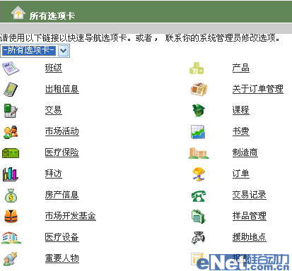 在選擇模塊的時(shí)候,如上圖所示,只要點(diǎn)擊“所有選項(xiàng)卡”,幾百個(gè)具體的模塊選項(xiàng)卡就都可供選擇了,對(duì)于醫(yī)院來講,很容易就能選擇到所有適合自己的功能模塊。