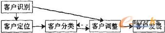 筆者認(rèn)為,客戶識(shí)別是貫穿整個(gè)客戶關(guān)系管理運(yùn)作流程的一條主線,也是企業(yè)判斷是否進(jìn)行以及如何進(jìn)行客戶獲取、客戶保持、關(guān)系終止活動(dòng)的根本依據(jù)。這里筆者把客戶識(shí)別可以分為定位客戶、客戶分類、調(diào)整客戶和發(fā)展客戶幾個(gè)步驟(見圖1)。