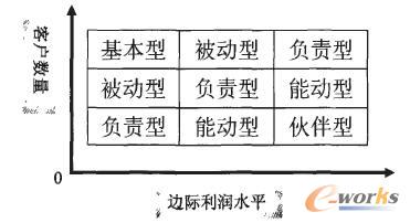 這5種類型之間并不具有簡單的優(yōu)劣對比或順序,因為企業(yè)所采用的客戶關系類型取決它的產(chǎn)品以及客戶的特征,不同企業(yè)甚至同一企業(yè)在對待不同客戶時,都有可能采用不同的客戶類型。一家生產(chǎn)日用化妝品的企業(yè),與它的化妝品消費者個人之間常會建立一種被動型的客戶關系,企業(yè)設立的客戶服務機構或聯(lián)絡中心將聽取客戶的意見,處理客戶投訴以及改進產(chǎn)品;但這家企業(yè)同大型超市或零售企業(yè),同連鎖的美容產(chǎn)業(yè)機構之間,?赡芙⒁环N伙伴型的客戶關系,實現(xiàn)產(chǎn)銷企業(yè)之間的互惠互利?铺乩仗岢觯髽I(yè)可以根據(jù)其客戶的數(shù)量以及產(chǎn)品的邊際利潤水平,根據(jù)圖3指示的思路,選擇合適的客戶關系類型。