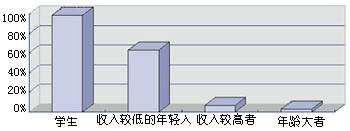 消費(fèi)者根據(jù)文化程度和職業(yè)的不同,對IP電話的認(rèn)可也不一樣,其中,學(xué)生和年輕的上班族的認(rèn)知率是最高的,這和他們的收入以及較易接受新事物有關(guān)。學(xué)生的收入較低,年輕的上班族中不少人的收入不高,同時他們也是長途電話的主要使用者之一。對于那些高收入的消費(fèi)者來說,IP電話所節(jié)省的費(fèi)用必要性不大,而很多話費(fèi)可以報(bào)銷,IP電話使用又不方便,因此他們一般不使用IP電話。而對于年齡較大的消費(fèi)者來說,IP電話的不方便使用是最主要的原因之一。圖5是個人消費(fèi)者對IP電話的使用程度比較。