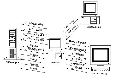 2、用戶認證:網關用ARQ把用戶卡號和密碼發(fā)給網守,網守再把卡號和密碼送給計費認證中心,如果計費認證中心認證通過,網守向網關發(fā)ACF,否則回ARJ。