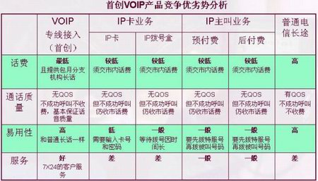 比業(yè)內(nèi)其他多種IP電話更具價(jià)格優(yōu)勢(shì)。每個(gè)長(zhǎng)途呼叫無論是否建立成功,都不收取本地市話費(fèi)用。對(duì)于國(guó)內(nèi)目前話務(wù)量集中的國(guó)際間通信,采用的資費(fèi)標(biāo)準(zhǔn)相對(duì)其他運(yùn)營(yíng)商具有價(jià)格優(yōu)勢(shì)。對(duì)于企業(yè)的Intranet Call,由于企業(yè)間不產(chǎn)生話費(fèi),更能夠節(jié)省大量的話務(wù)開支。