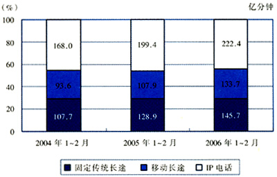 圖1 2006年1-2月的電信業(yè)務收入構成