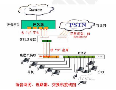使用網(wǎng)關(guān)電話打國內(nèi)/國際其他普通公話或手機,稱為“點對面模式”。在使用智能路由選線器以后,打出電話時自動根據(jù)首位字頭,例如“0”,判斷選擇市話或者VOIP專線通話,--字頭有“0”,時自動走VOIP網(wǎng)絡(luò)線路,字頭沒有“0”時,選擇走通常的市話線路,完全不改變我們過去使用電話的習慣!