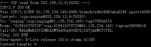 Asterisk與X-Lite之間發(fā)送OK與ACK響應消息,表示SIP軟終端已經跟H323語音網關建立了連接,并且被叫已經接聽,開始成功通話