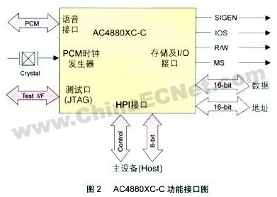 作為本系統(tǒng)中的核心部分,語(yǔ)音處理采用以色列audiocodes公司生產(chǎn)的專用多通道語(yǔ)音處理芯片ac4880xc-c。它具有以下特點(diǎn):