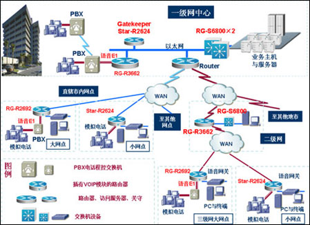 1、不改變?cè)芯W(wǎng)絡(luò)構(gòu)架,通過(guò)增加銳捷26系列路由器就可以直接把用戶PSTN系統(tǒng)接入IP網(wǎng)絡(luò),輕松實(shí)現(xiàn)VOIP應(yīng)用的擴(kuò)展接入。