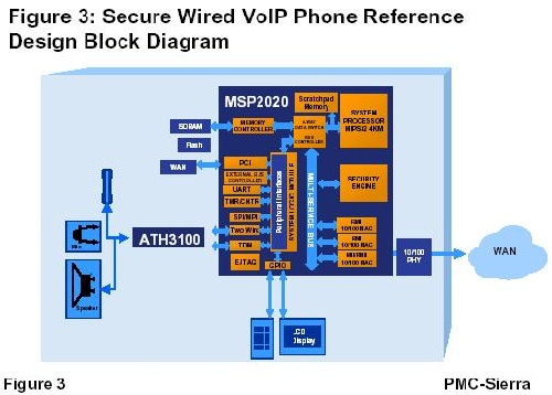 圖3:PMC-Sierra具備安全特性的VoIP有線電話系統(tǒng)框圖