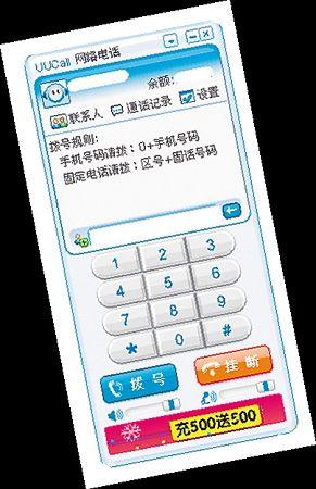 與傳統(tǒng)電話相比,UUcall的價格頗具吸引力。據(jù)了解,電腦使用該軟件并充值后,撥打全球任意手機、座機,最低話費為0.06元/分鐘,國內(nèi)長途0.12元/分鐘,國際長途至美國0.22元/分鐘。低廉的價格使UUcall等網(wǎng)絡(luò)電話擁有一大批在海外、異地求學、工作,且電話往來頻繁的客戶群。