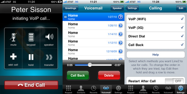 一家來自舊金山的VoIP廠商公布了一款iPhone上運行的VoIP應(yīng)用,Line2.這款僅售99美分的程序可以讓你在Wi-Fi與3G網(wǎng)絡(luò)上撥打VoIP電話,只要每月14.95美元,您就可以隨意通過這款網(wǎng)絡(luò)電話撥打美國和加拿大,這一切只需要您有3G或者Wi-Fi信號即可。