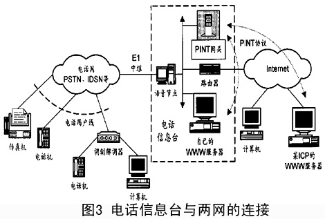 ---- 為 了 實(shí) 現(xiàn)PINT 業(yè) 務(wù) 或PIN 業(yè) 務(wù), 電 話 信 息 臺(tái) 必 須 滿(mǎn) 足 一 定 的 技 術(shù) 條 件。 目 前 有 很 多 電 話 信 息 臺(tái) 只 是 一 個(gè) 交 互 式 語(yǔ) 音 應(yīng) 答 系 統(tǒng)(IVR) 或 兼 有 人 工 應(yīng) 答 系 統(tǒng), 也 就 是 說(shuō) 還 沒(méi) 有 接 入Internet。 這 種 情 況 是 遠(yuǎn) 遠(yuǎn) 不 夠 的。 由 于PINT/PIN 業(yè) 務(wù) 涉 及 到 電 話 網(wǎng) 與Internet, 電 話 信 息 臺(tái) 在 和 電 話 網(wǎng) 連 接 的 基 礎(chǔ) 上 還 要 與 Internet 保 持 連 通 性, 這 是 開(kāi) 展 目 標(biāo) 業(yè) 務(wù) 的 必 要 條 件。