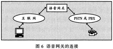 ——圖6為計(jì)算機(jī)到普通電話的通信方式。語(yǔ)音網(wǎng)關(guān)的一側(cè)與公眾電話網(wǎng)或用戶小交換機(jī)相連。在主叫方,它接收電話信令,將其數(shù)字化、壓縮、打包(語(yǔ)音包)并送到互聯(lián)網(wǎng)上;在被叫方,它從互聯(lián)網(wǎng)上接收語(yǔ)音包,解包、解壓并將其發(fā)送到公眾電話網(wǎng)或用戶小交換機(jī)上。