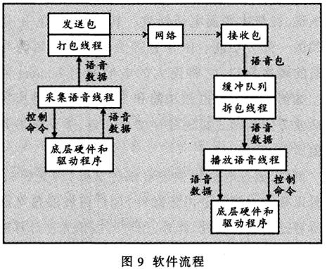 ——播放語(yǔ)音線程從接收線程的緩沖區(qū)中讀入數(shù)據(jù),送入底層語(yǔ)音板進(jìn)行播放。其框圖如圖9所示。