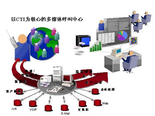 相比之下,以CTI技術為核心的呼叫中心才有可能打破這些局限,成為真正具有開放性、可靠性、靈活性、統(tǒng)一性的多媒體呼叫中心。優(yōu)利公司提供的以CTI技術為核心的呼叫中心,具有統(tǒng)一的CTI核心組件、統(tǒng)一的智能轉(zhuǎn)接策略、統(tǒng)一的呼叫統(tǒng)計和業(yè)務統(tǒng)計、統(tǒng)一的業(yè)務代表座席應用、統(tǒng)一的管理配置環(huán)境及完善的互聯(lián)網(wǎng)服務接口功能模塊,是客戶選擇呼叫中心與互聯(lián)網(wǎng)技術相結(jié)合的有效方案之一。