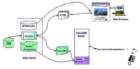 新的語音技術(shù)可以創(chuàng)建出對話驅(qū)動的應(yīng)用程序,例如語音識別技術(shù)(ASR),語音合成技術(shù)(TTS)以及記錄和回放數(shù)字化語音在 PC 和服務(wù)器(分發(fā)到客戶端設(shè)備)上 。Voice XML 提供了一種與技術(shù)無關(guān)的語言,可以用在語音應(yīng)用程序。這些應(yīng)用程序?qū)⒑蠖颂幚碚Z音的服務(wù)和處理機制與前端基于 Voice XML 的表示層分離開。例如,一個精心設(shè)計的 Web 站點可以輕而易舉地支持語音驅(qū)動的瀏覽器(比如您很可能在移動電話上會使用的那種),同時它有能支持其它的瀏覽器(比如一個 WAP 瀏覽器或 HTML 瀏覽器)。當(dāng)接受到來自瀏覽器的最初請求時,服務(wù)器將監(jiān)測出瀏覽器的類型。如果瀏覽器被確認(rèn)為一個語音瀏覽器,服務(wù)器將返回對應(yīng)的 Voice XML 頁面。