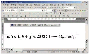 安裝成功后,你會從圖16中看到一個手寫圖標(biāo),接下來我們就可以使用手寫識別功能啦。首先,你必須在屏幕上選定書寫區(qū)域,可以是屏幕上類似于筆記本橫格紙的輸入板,也可以在屏幕上任意的位置書寫。我們可通過使用手寫輸入設(shè)備或移動鼠標(biāo)墊上的鼠標(biāo)來形成文字,從而完成書寫,手寫文字將被自動識別,并輸入到程序的插入點(diǎn)處。就像通常在紙張表面上一樣,你可以使用草書、印刷體或二者兼而有之地進(jìn)行書寫,書寫時不必每寫完一個字母后作停頓,可輸入整個單詞并在單詞之間留出空格。