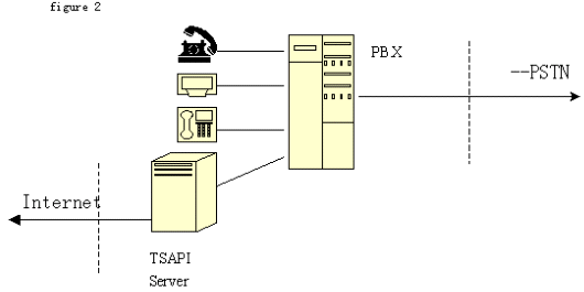 2、TSAPI技術標準:由Novell公司開發(fā)。它將程控交換機或中央電話系統(tǒng)與Netware網絡集成在一起。可以實現(xiàn)呼叫轉移,交互式語音(IVR)和自動呼叫分配(ACD)等功能。支持包括Windows各種版本、OS/2和Unix等目前主要操作系統(tǒng)。不同于TAPI ,TSAPI在計算機和桌面之間建立一個邏輯的連接,通過這些連接在任一端的TSAPI應用就可以完成呼叫控制。由于TSAPI主要為Netware網操作系統(tǒng)增加電話服務,不在每個電話和PC之間建立直接的連接,而是由一個電話服務器Netware可加載模塊(NLM)、一個電話服務器API(TSAPI)、一個電話服務器庫和一個電話客戶庫組組成在服務器電話系統(tǒng)間建立的連接,因此這個連接也稱為PBX-To-Server連接。電話服務器 NLM是負責 PBX和 Netware服務器間傳送信息的。電話服務器 API是為運行于服務器上的應用提供電話服務器API。三方連接在客戶--服務器組網中比單方連接有更大的靈活性。網上的每個用戶都可迅速地通過現(xiàn)有的LAN基礎結構撥入PBX。對其他服務的接入,如主機或終端仿真、傳真、E-mail等,都可以通過CTI接口獲得,只要這些業(yè)務已經存在于網上。結構如圖: