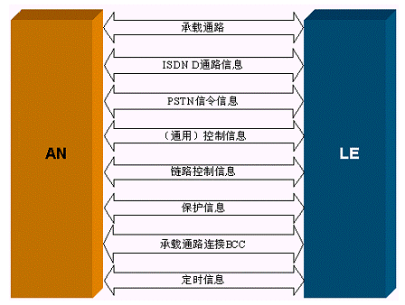 PSTN:規(guī)定了AN如何獲取PSTN用戶(hù)線(模擬和數(shù)字)狀態(tài),以及如何向LE傳遞,以便由LE最終完成呼叫控制。其中可能包括特定呼叫協(xié)議的轉(zhuǎn)換和翻譯以滿(mǎn)足核心網(wǎng)中的LE信令標(biāo)準(zhǔn)。