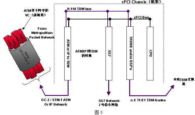 圖5是NMS公司的VoATM典型網關結構。
