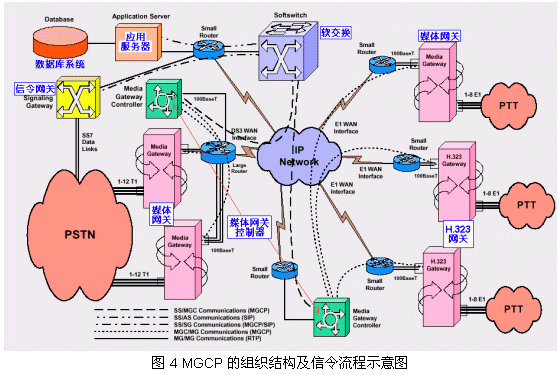 從前面的圖4我們已經(jīng)看到,在MGCP協(xié)議體系中的主要部件包含媒體網(wǎng)關(guān)控制器(MGC:Media Gateway Controller)、媒體網(wǎng)關(guān)(MG:Media Gateway)、信令網(wǎng)關(guān)(SG:Signaling Gateway)、媒體資源(Media Resource)。其中的媒體資源,包含編解碼器(Codec)、調(diào)制解調(diào)器(Modem)、交互式語聲應(yīng)答系統(tǒng)(IVR:Interactive Voice Response)、橋路器(Bridge)等。
