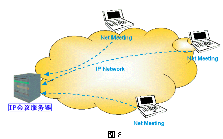 如圖8所示,IP會議包含兩個基本組件:IP會議服務(wù)器(IP Conference Server)和IP會議客戶端(如Netmeeting等)。