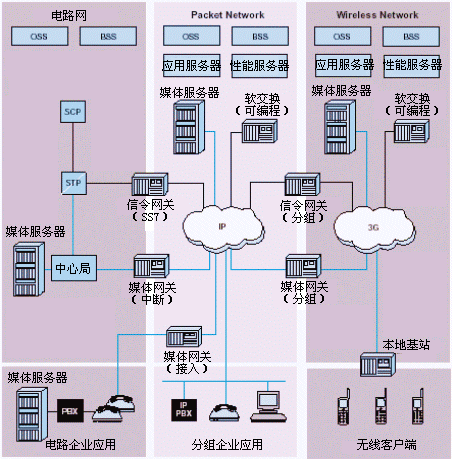 - 特征服務器--從現有電路交換網絡實現信號控制點(SCP)業(yè)務以及由本地交換和接入匯接交換機提供的高級業(yè)務。