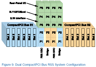 圖9是一個(gè)雙重的CompactPCI總線RSS系統(tǒng)的例子。 RSS-capablePICMG 2.16系統(tǒng)管理板(RSS