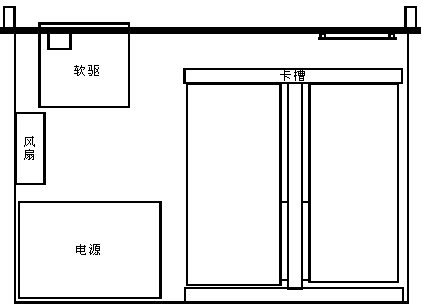 DSC110由若干水平插在卡槽兩側(cè)的板卡構(gòu)成,卡槽固定在機箱的底部的后側(cè)。冷卻扇、硬盤、電源、軟盤驅(qū)動器和前端面板顯示卡都固定在機箱上。