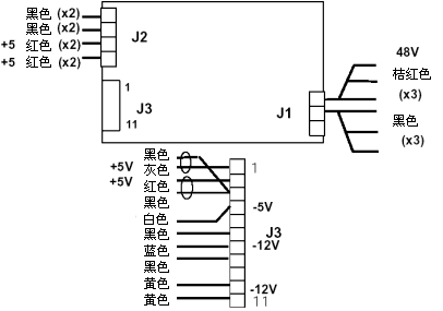 首先要將連接PSU與系統(tǒng)其它部分的電纜拆除。有兩個"鍬型連接點端"和一個"螺絲型連接端"連接器模塊,它們的固定螺絲可以通過PSU蓋的一條縫而觸及。這些連接器上所有電纜都應(yīng)拆除,電纜位置在圖8-1中詳述。將4個固定螺絲除下,將PSU從機(jī)箱中抽出。