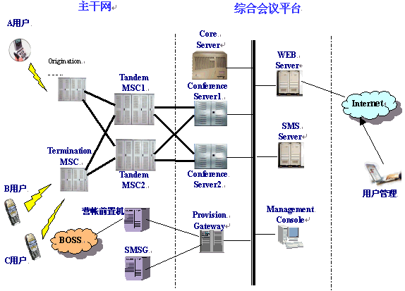 概述 。。今年來,隨著電話會議技術(shù)的不斷成熟,基于計算機(jī)平臺的會議型業(yè)務(wù)應(yīng)用越來越活躍,其中電話會議系統(tǒng)、QQ聊天系統(tǒng)以及BGM便是主要熱門應(yīng)用。 。。交互式電話會議系統(tǒng)是一個真正由用戶自己管理的智能型交互式電話會議系統(tǒng),是目前國際上流行的一種召開會議的新形式。客戶利用它可以隨時隨地召開本市、國內(nèi)或國際的電話會議,人們無論身在何處,只需撥打一個事先約定的電話會議號碼和密碼,即可參加會議,并且能自由組會,同時發(fā)言,自由交談?梢酝瑫r招開數(shù)十方,適用于商務(wù)研討、緊急討論會、信息匯總會、親友聚會等各種各樣的會議。