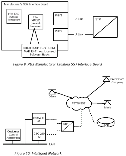SS7產(chǎn)品可以被用來建立SS7網(wǎng)絡(luò)元素(NEs)和高級智能網(wǎng)絡(luò)(AIN)平臺,比如: