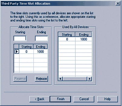在一個(gè)應(yīng)用中可以使用NCM API動(dòng)態(tài)分配時(shí)隙,本文檔規(guī)定鍵入0為最小值,鍵入1000為最大值。然后點(diǎn)擊保留,時(shí)隙范圍便顯示在清單中了。