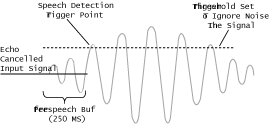 - 預緩沖(Pre-Speech Buffer) - 進入的語音數(shù)據(jù)被存在一個250毫秒的緩沖區(qū)里。 當檢測到語音能量,這一部分儲存在緩沖區(qū)里的語音就會被轉(zhuǎn)發(fā)到語音識別資源來被處理。這種預緩沖的里包含的關鍵信息在高識別準確率要求的時候是十分關鍵的。
