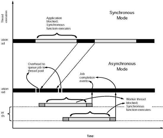 如前所述,使用額外的線程可以讓主應(yīng)用線程不必去等待同步函數(shù)的執(zhí)行。也就是說,應(yīng)用程序可以繼續(xù)處理它的邏輯,而不會(huì)被執(zhí)行中的同步函數(shù)阻塞。
